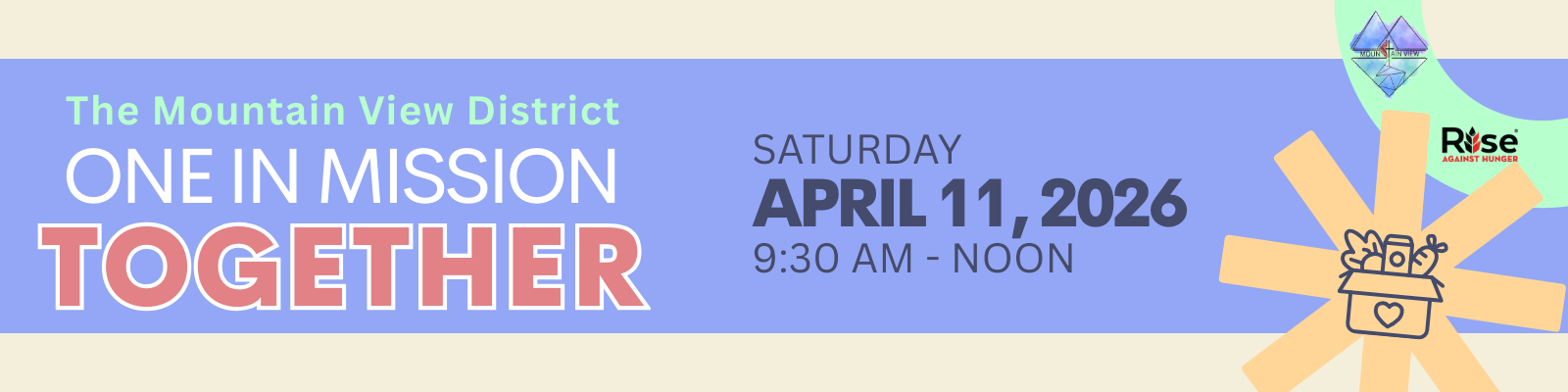 Join members of all 72 Mountain View District congregations as we come together in one to pack 30,000 lbs of food AND care directly for our communities.
